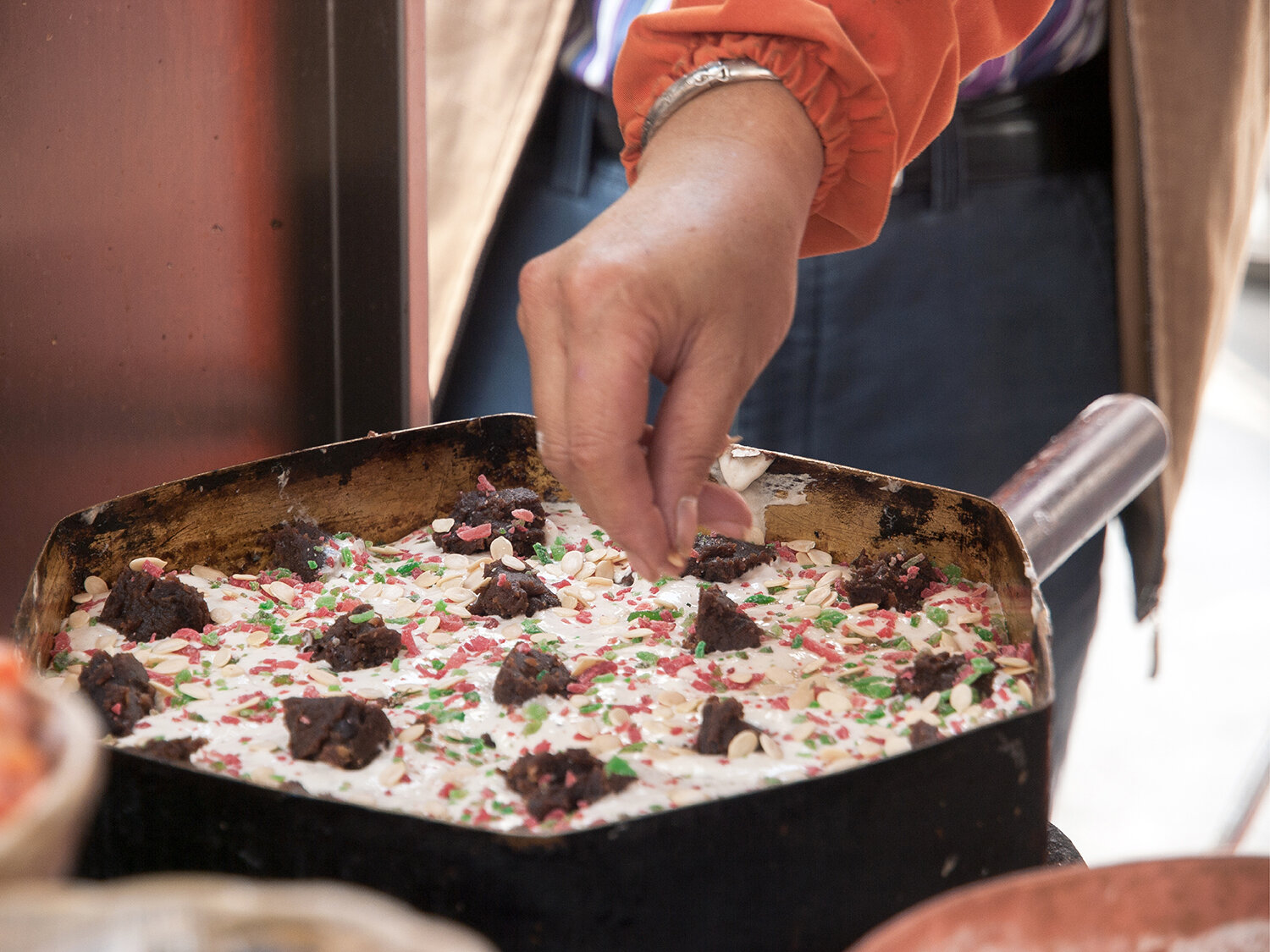 Die gekochten und zerkleinerten, dann pürierten Bohnen werden anschließend mit einer guten Dosis Schmalz und Zucker erhitzt. Ebenso aufwendig gestaltet sich, so Tante Chen, die Herstellung des Teigs aus Mehl und Wasser, je nachdem auch etwas Öl sowie Triebmittel.