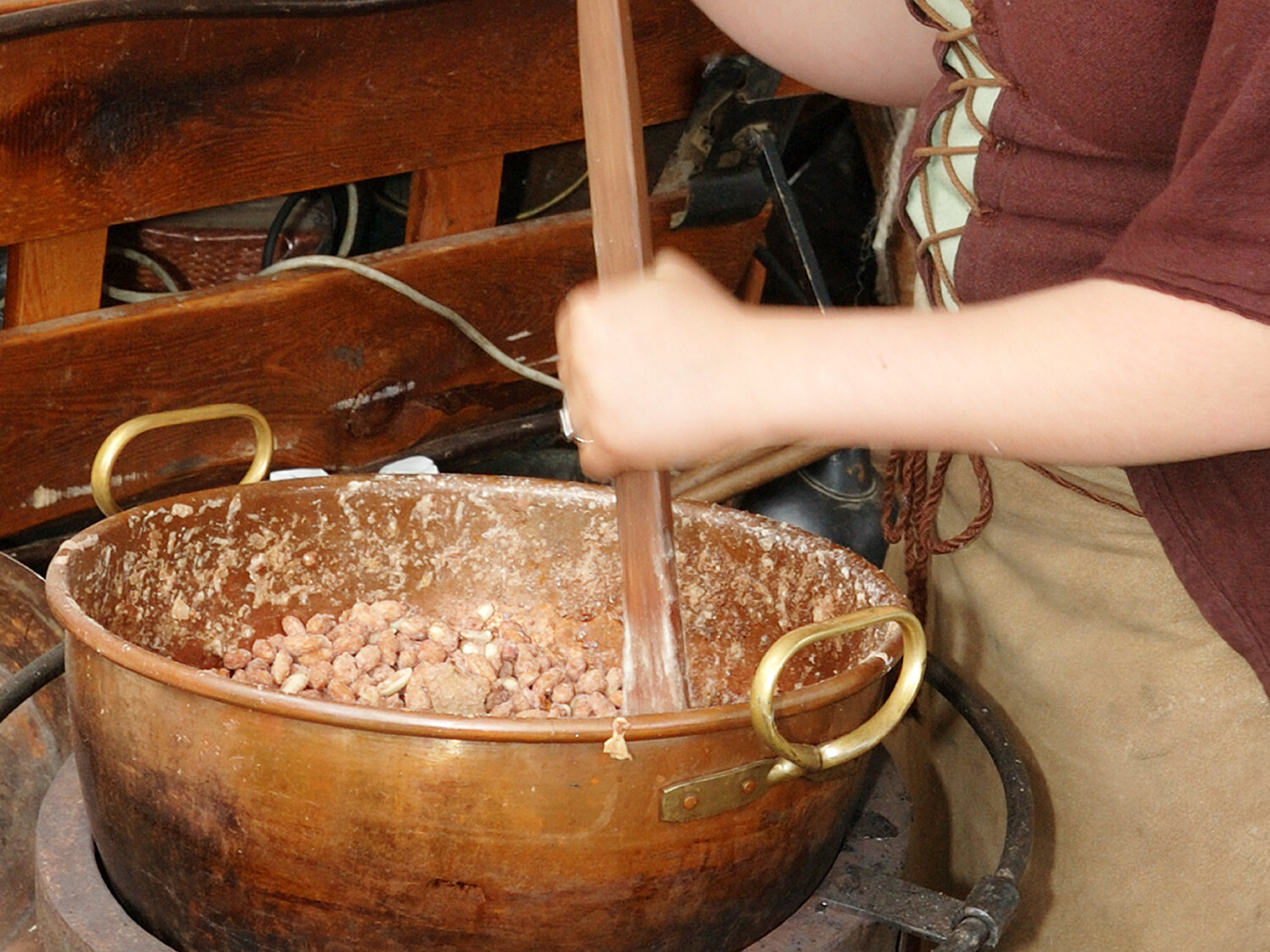 Noch Anfang der 1970er Jahre, als ich anfing, Schausteller und Markthändler zu beliefern, gab es nur wenige, die sich aufs Herstellen gebrannter Mandeln verstanden. Es brauchte einen Kupferkessel, einen Gasbrenner und kräftige Arme! So ließen sich auch geröstete Hasel- und Erdnüsse fabrizieren.