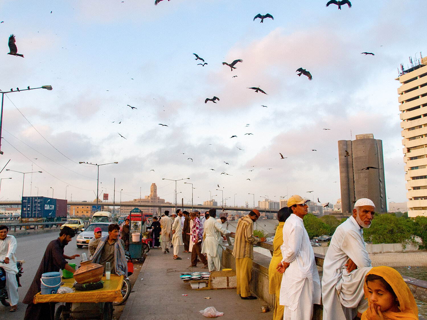 Und trotzdem hat mich die Stadt mit ihren gar nicht militanten, vielmehr liebenswerten, lebensfrohen, fremden Besuchern gegenüber aufgeschlossenen Bewohnern auf Anhieb fasziniert. Niemals Argwohn, stets ein Lächeln. Spektakuläres Ereignis: die Fütterung der Raubvögel auf der Native Jetty Bridge, eine der ältesten Brücken Karatschis zwischen der Stadt und dem Hafen, schon 1854 eingeweiht.
